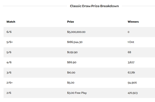 Lotto 649, prize breakdown, april 15