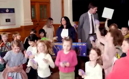 “Thanks for dancing, thanks for bringing your clocks!”, said Premier David Eby to a group of school-age kids from Sundance Elementary in Victoria (SD61).