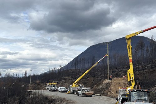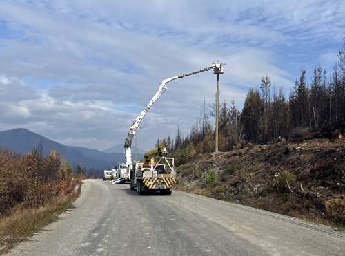 Much of the material required for restoration – including poles, wire, and hardware – has already been transported to the site, despite logistical challenges posed by the wildfire and road closures.