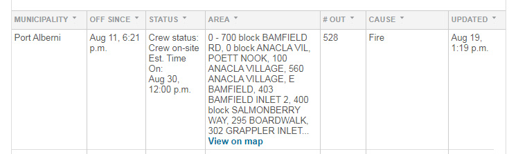Given the scale of the damage and the complexity of the terrain, BC Hydro has estimated that power will be restored by August 30.