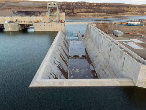 Work also continues to backfill the tunnels used to divert the Peace River, and revegetate areas no longer required for construction.