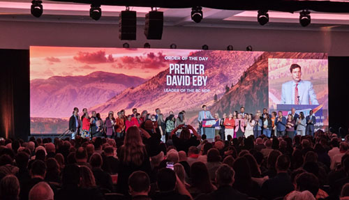 Delegates rose to their feet with applause on fundamental declarations such as an NDP government always standing for the right of workers to organize and strike as well as more specific ones like the recent achievement of equal disability support for all individuals and promising to uphold the northwest coast tanker ban.