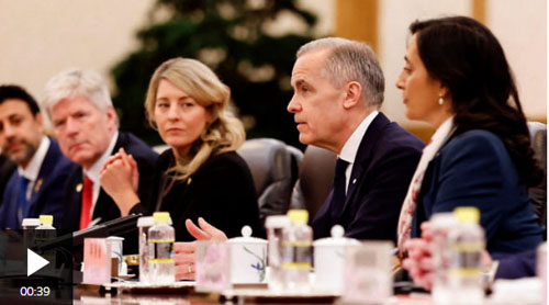 Prime Minister Mark Carney meeting with China’s leadership in Beijing, accompanied by several Canadian ministers including Melanie Joly (Industry),d Anita Anand (Foreign Affairs) and tim Hodgson (Energy & Natural Resources), Jan 16, 2026. [Reuters /web]