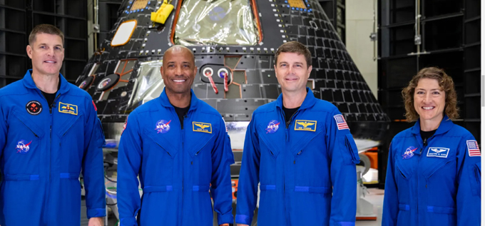There are four astronauts in the space craft today. The crew is Reid Wiseman (commander), Victor Glover (pilot), Christina Koch (mission specialist), and Jeremy Hansen (mission specialist).