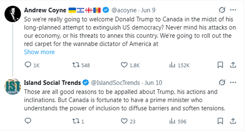As well, the sheer size of India as a fast-growing democratic country makes it an obvious participant, though there’s been pushback on Carney for not appearing to adequately recognize the seriousness of the killing of an Indo-Canadian here in Canada. However, in the case of both India and not barring Trump from the G7 this year, Canada is fortunate to have a leader who recognizes the power of inclusion to to diffuse barriers and soften tensions.