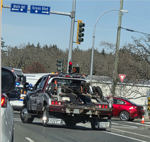 This afternoon in Colwood there was a serious vehicle incident at the corner of Island Highway and Ocean Boulevard.