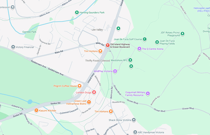 This afternoon in Colwood there was a serious vehicle incident at the corner of Island Highway and Ocean Boulevard (Wale Road on the west side).