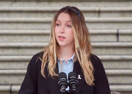 MLA Jennifer Blatherwick who is Parliamentary Secretary for Gender Equity emceed the outdoor vigil on the steps of the BC Legislature on December 4.