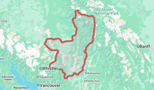 The TNRD has an area of 44,449.49 sq km (17,162 sq miles), located north of Whistler and northeast of Kelowna, and reaches to the Alberta border at the northeast boundary of BC .