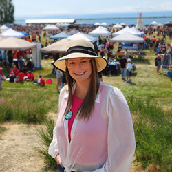 Langford-Juan de Fuca by-election candidate Elena Lawson (BC United) at her information booth at Luxton Spring Fair, May 20, 2023. [Mary P Brooke / Island Social Trends]
