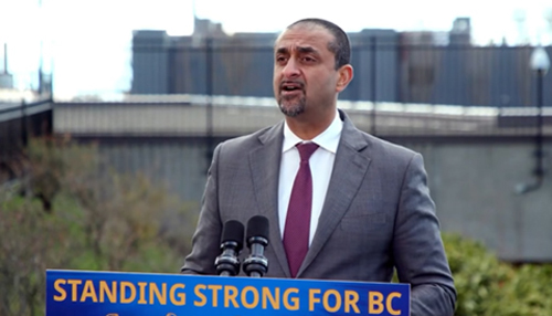 Premier David Eby and Ravi Kahlon, Minister of Jobs and Economic Growth, delivered the announcement to media at the Victoria shoreline over the noon hour today.