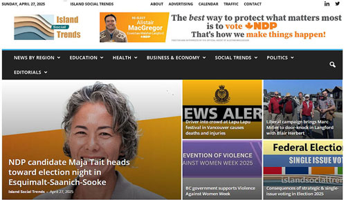 On election night, check for analysis, interviews with candidates, and Vancouver Island results in the Federal Election News Section of Island Social Trends.
