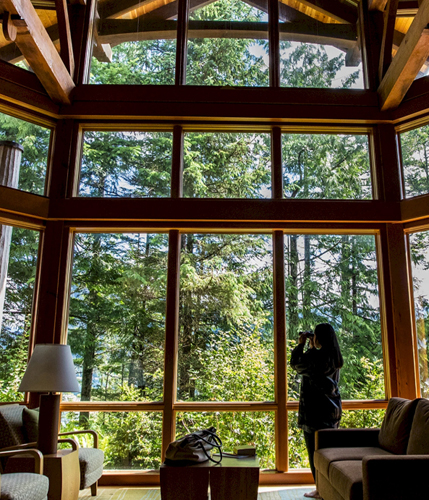 Sonora Resort is a favorite for both corporate retreats and high-end travellers who are looking for remote luxury and a way to enjoy the plentiful wildlife in the area without having to hike a mile to do so. The accommodations themselves are warm, but contemporary and bring the outdoors in with floor-to-ceiling windows. Watch sea lions frolic in the water from bed.