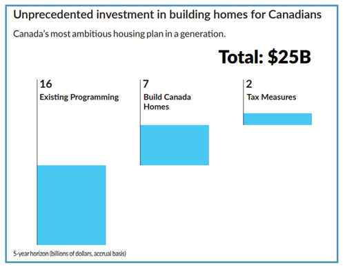 The budget outlines $115 billion in infrastructure spending over five years, $30 billion more in defence and security spending and $25 billion for federal housing initiatives over that same period.