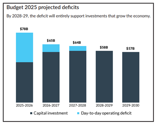 The projected deficit in Budget 2025 is $78.3 billion for this fiscal year.