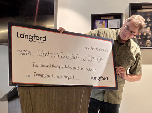The City of Langford today officially donated $5,092.25 to the Goldstream Food Bank.