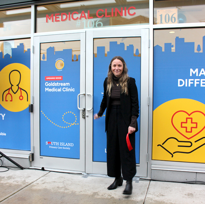 South Island Primary Care Society Executive Director Alyssa Andres at the new Goldstream Medical Clinic on opening day, Feb 9, 2026. [Mary P Brooke / Island Social Trends]