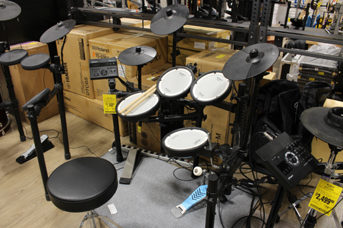 For sale in-store are musical instruments (including guitars, drums, pianos, keyboards, band and strings), digital DJ and home recording equipment, and printed sheet music.