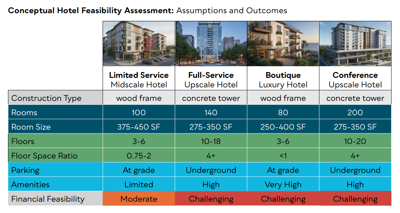 Recognizing that hotel development is complex and comes with unique design standards, operating requirements, and financial risk, the Working Group identified six generalized recommendations for consideration by municipal leaders and destination developers, recognizing that the recommendations will not apply universally across the region.