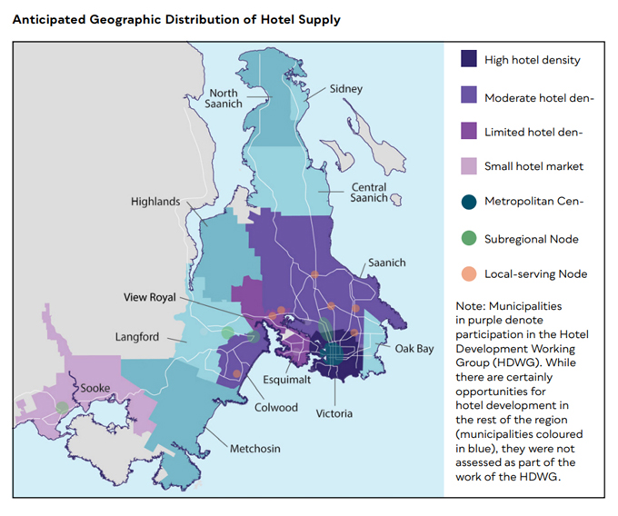 The municipalities of Langford, Sidney and Oak Bay did not have representatives in the report contributors list — areas where hyper-localized hotel development has been (or is currently) underway.
