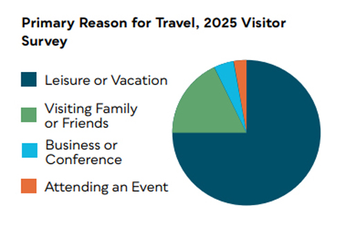 More people are coming to visit Victoria whether on vacation (largest percentage), visiting family or friends (next largest portion), or to do business or attend a conference or event.