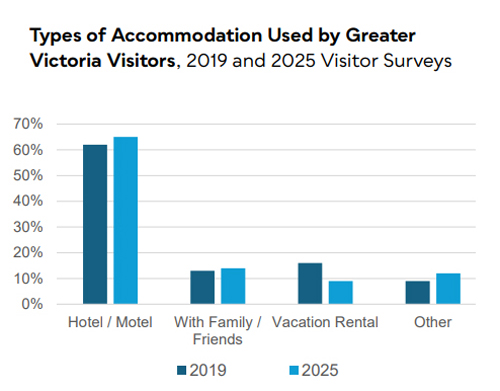 Types of accommodation when visiting in Victoria, 2019 to 2025. [Destination Greater Victoria, April 2026]
