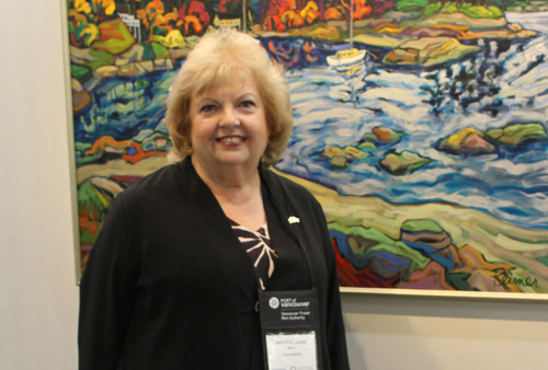 City of Surrey Mayor Brenda Locke at UBCM 2025 convention in Victoria, Sept 23, 2025. [Island Social Trends]