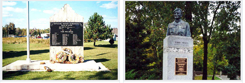 This monument was made possible by the National Aboriginal Veterans Association and the generous donations of the Canadian people. Artist: Noel Lloyd Pinay.