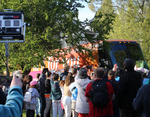Victoria NDP incumbent Laurel Collins hopped off the bus after Singh. Two other NDP candidates at the event were Maja Tait (Esquimalt-Saanich-Sooke) and Colin Plant (Saanich-Gulf Islands) and their teams.