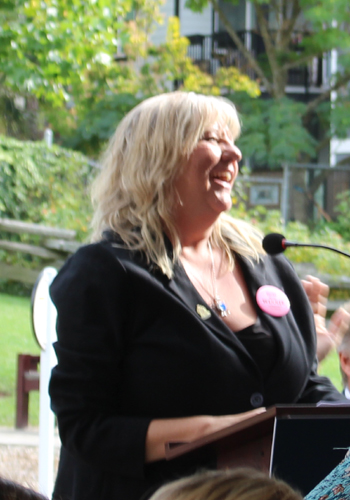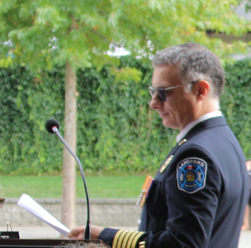 For about two hours the program was formal and informal. Emceed by Fire Chief Chris Aubrey, speeches at the podium were delivered by Langford Mayor Scott Goodmanson, former Mayor Stew Young, long-time business leader Mike Wignall, former SD62 school trustee Wendy Hobbs, and Winnie’s daughter Sandy Siefert.