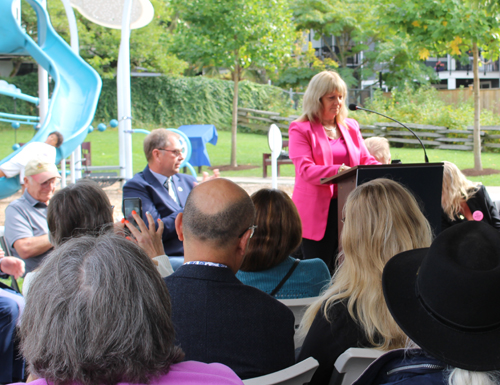 It was Sandy Sifert who had spearheaded the park renaming through the City over the past few years. She waved to her mother on a Facebook livestream as part of delivering her remarks to the crowd that sat under a tent but overflowed across much of the park.