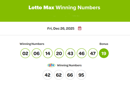 Winning numbers will be posted after 7:30 pm PT. Update: The Dec 26 Lotto Max winning numbers are: