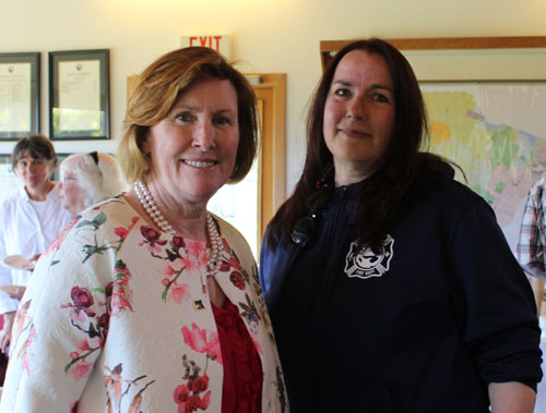 Metchosin Mayor Marie-Térèse Little and Fire Chief Stephanie Dunlop at Pride Flag event at District of Metchosin municipal hall on June 21, 2024. [Mary P Brooke / Island Social Trends]