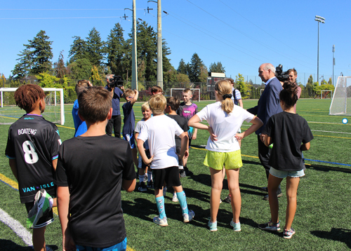 The idea of developing sport capacity in BC communities goes back to when Horgan was premier. A sports-enthusiastic himself, he would take time when he could to play sports with kids as schools and community events including soccer, basketball, lacrosse and football.