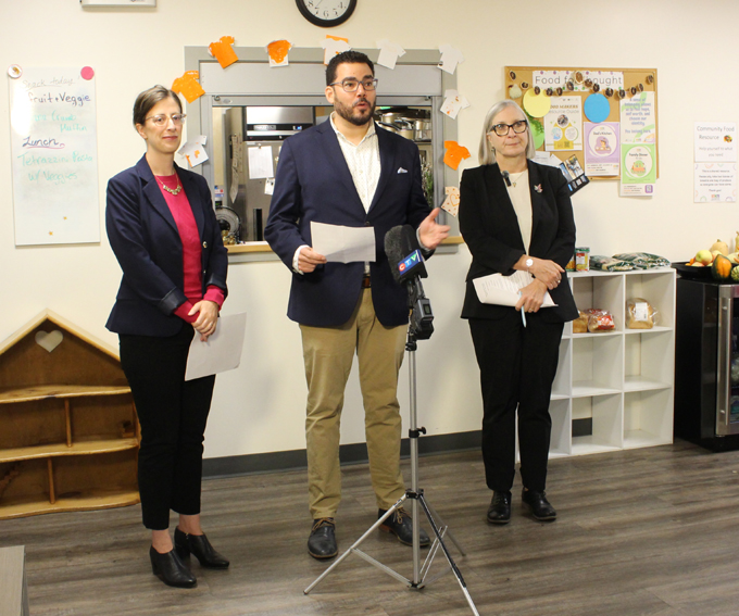 As part of this announcement, Hadju visited and toured the Saanich Neighbourhood Place child care centre today in the Tillicum Road area of Saanich. She was accompanied for the media session by two first-term local Liberal MPs — Secretary of State for Seniors Stephanie McLean (Esquimalt-Saanich-Sooke) and Will Greaves (Victoria).