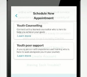 Services offered through the app and web portal include drop-in and scheduled counselling, primary care, peer support and group sessions.