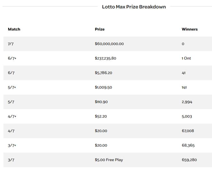 prize breakdown, lotto max