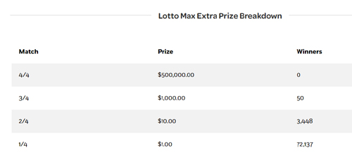 Prize breakdown for the EXTRA in the Feb 24, 2026 Lotto Max draw. [BCLC]