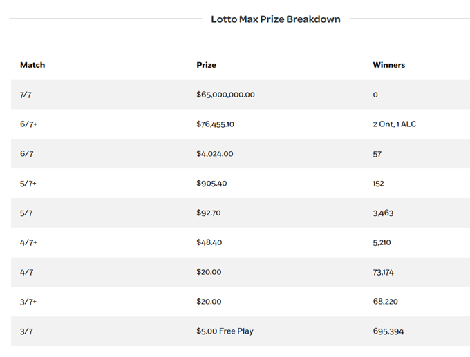 No big winners in Feb 24 Lotto Max draw, next jackpot $70+ million