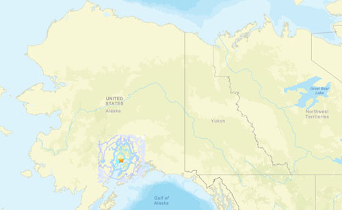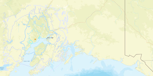At 7:39 am this morning, a magnitude 4.9 earthquake occurred 45 miles (72 km) west of Anchorage, Alaska — 10 km NW of Beluga, Alaska.