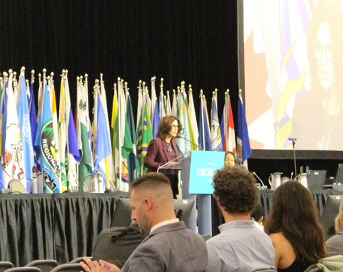 She addressed delegates at the 2025 convention of the Union of BC Municipalities (UBCM) on Wednesday in Victoria. (UBCM later apologized for not properly introducing her, as in neglecting to ask delegates to remain seated for the final portion of the morning program.)