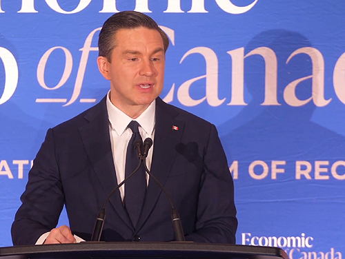 Conservative Leader Pierre Poilievre today addressed an audience of about 300 people at the Economic Club of Canada in Toronto.