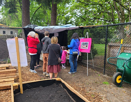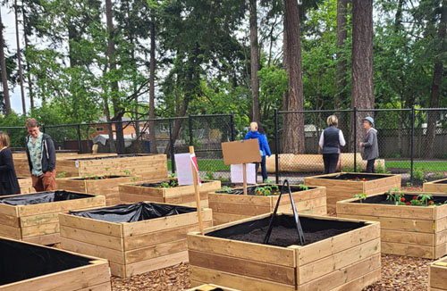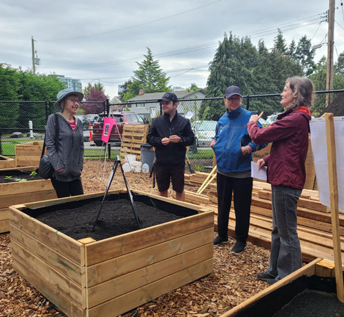 Two Langford city councillors — Mary Wagner and Kimberley Guiry — attended the May 10 event to help celebrate the progress at Porcher Park Community Garden. They pointed out that community gardens throughout the city are part of the original Official Community Plan (OCP) and are carried forward in the new (draft) OCP.