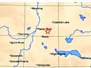 - 5:40 pm M 4.0 (43 km from Peace River)