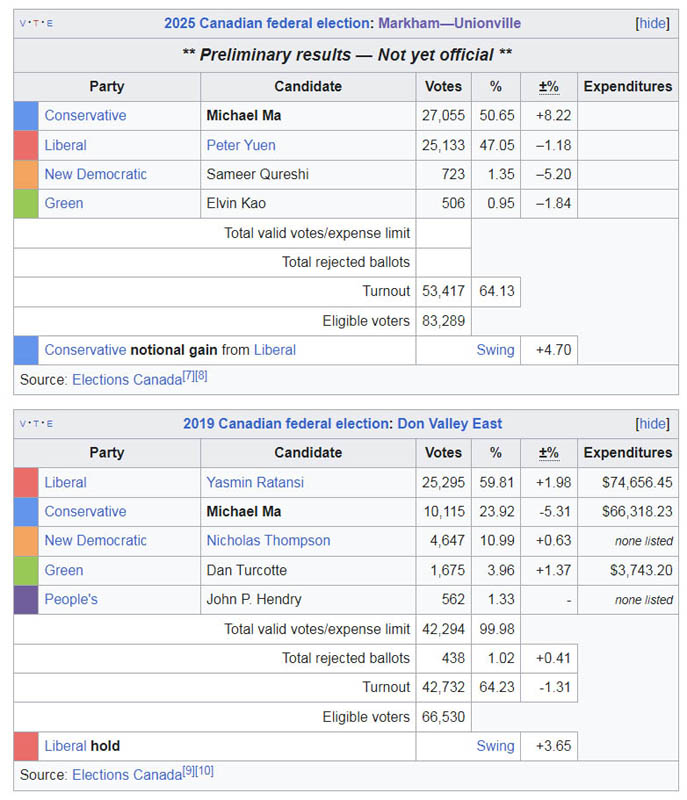 Around 6:15 pm Eastern this evening (3:15 pm PT), the Liberal Party of Canada issued a statement from Ma (MP for Markham-Unionville) that he had joined the Liberals. Ma is a first-time MP, newly elected in the April 2025 election.