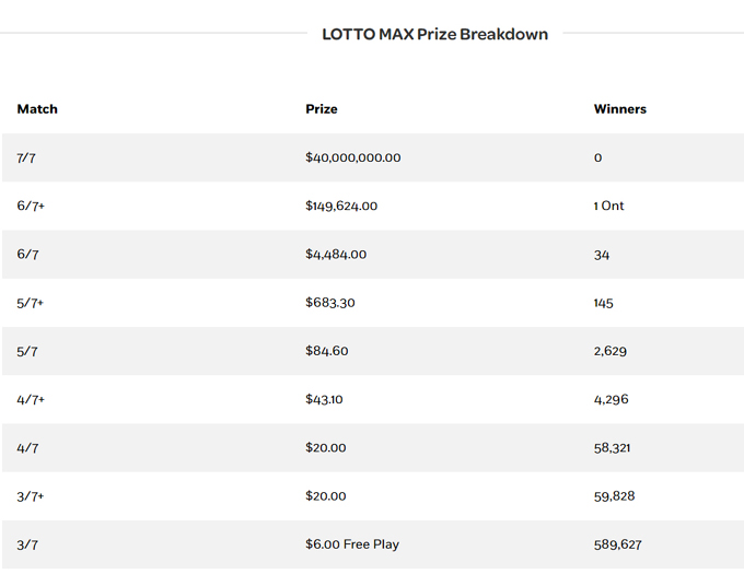 The next Lotto Max draw on April 24, 2026 will have 50 potential MaxPlus winning sets of numbers.