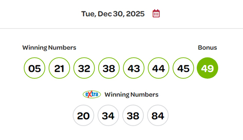- The December 30, 2025 Lotto Max winning numbers are 05, 21, 32, 38, 43, 44, 45 and bonus 49.