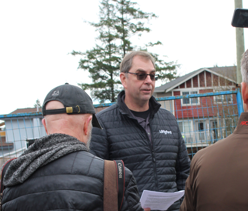 Langford Mayor Scott Goodmanson addressed media in front of The Scene development site on Scafe Road, Feb 12, 2026. [Mary P Brooke / Island Social Trends]