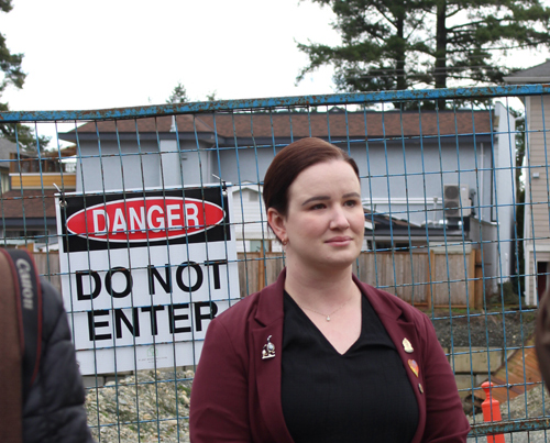 City of Langford Director of Engineering Kate Balzer, on site at The Scene, Feb 12, 2026. [Mary P Brooke/ Island Social Trends]
