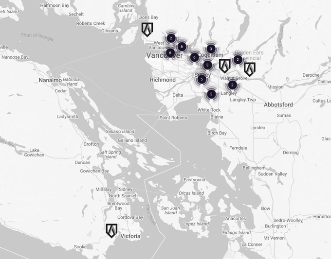 Projects by The Agency in BC, showing the location of The Scene in Langford. [The Agency REM]